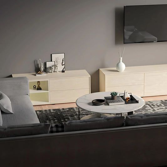 Basée à Saint-Sauveur, Créations du Nord est votre référence en mobilier haut de gamme en placage de vrai bois (chêne blanc, noyer). Chaque meuble est conçu et fabriqué localement, avec un souci du détail artisanal et un design minimaliste intemporel.